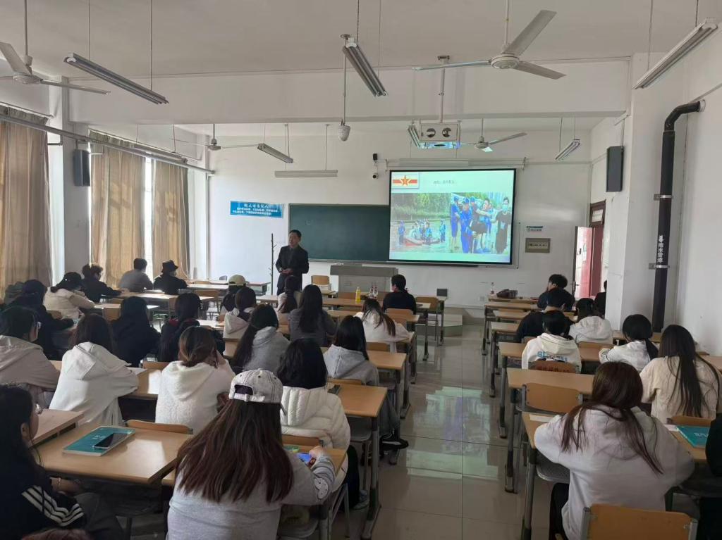 讲座中,杨岸瑛队长基于其多年救援实战经验,系统阐述了蓝天救援队参与灾害救援、遇险搜救、公益保障等任务的重要历程,重现了救援一线的艰险场景,阐释了队伍所秉持的“人道、博爱、奉献”志愿精神,使师生们深刻感受到救援工作的责任与担当。