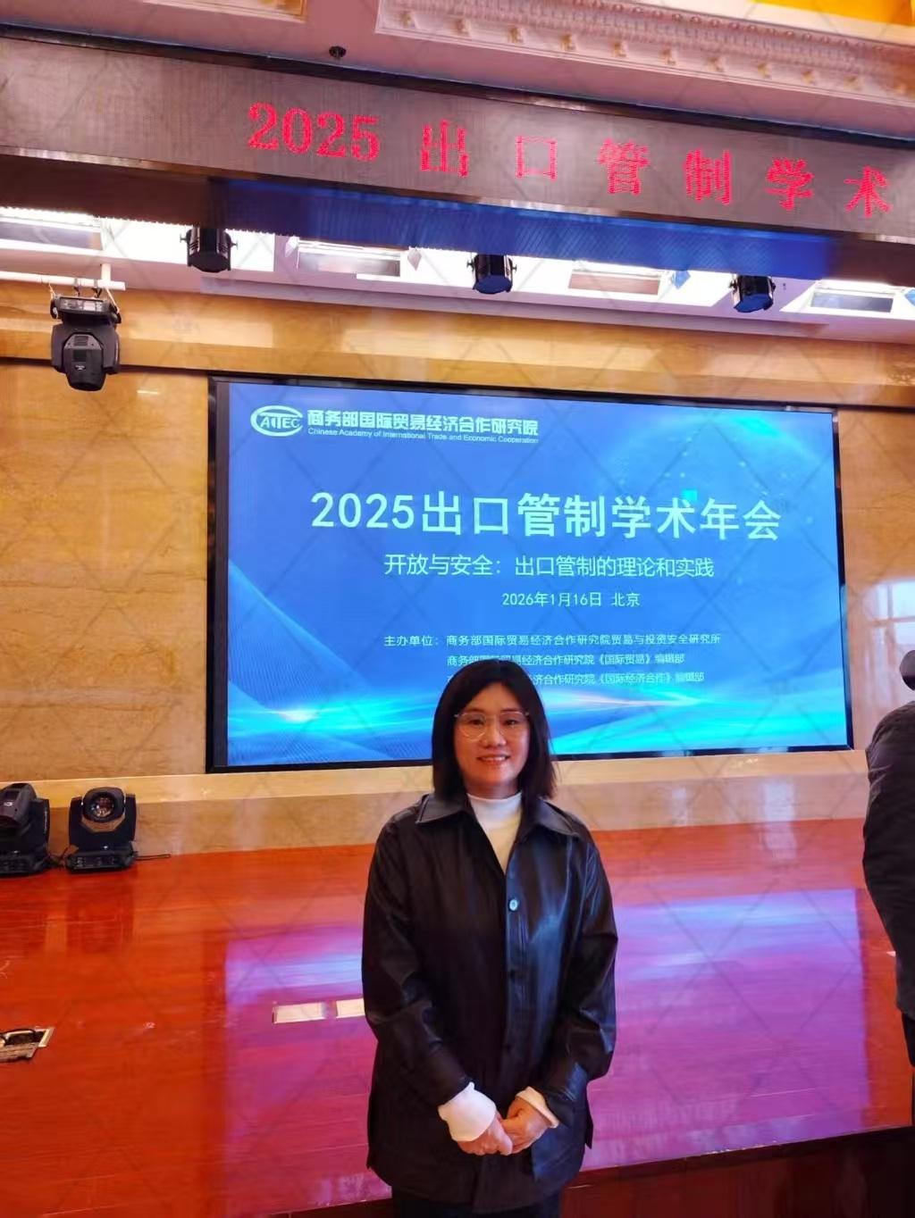 近日,法学与公共管理学院王文青老师受邀赴京参加了商务部出口管制学术年会,并参与了“分会场论文报告研讨”。本次会议以“完善出口管制体系、服务高水平对外开放”为主旨,围绕我国出口管制法律制度建设、国际规则发展趋势以及出口管制与国家安全、产业发展的关系等重点议题展开了深入研讨。来自商务部、外交部、高校和科研机构的专家学者就相关前沿问题进行了充分交流。