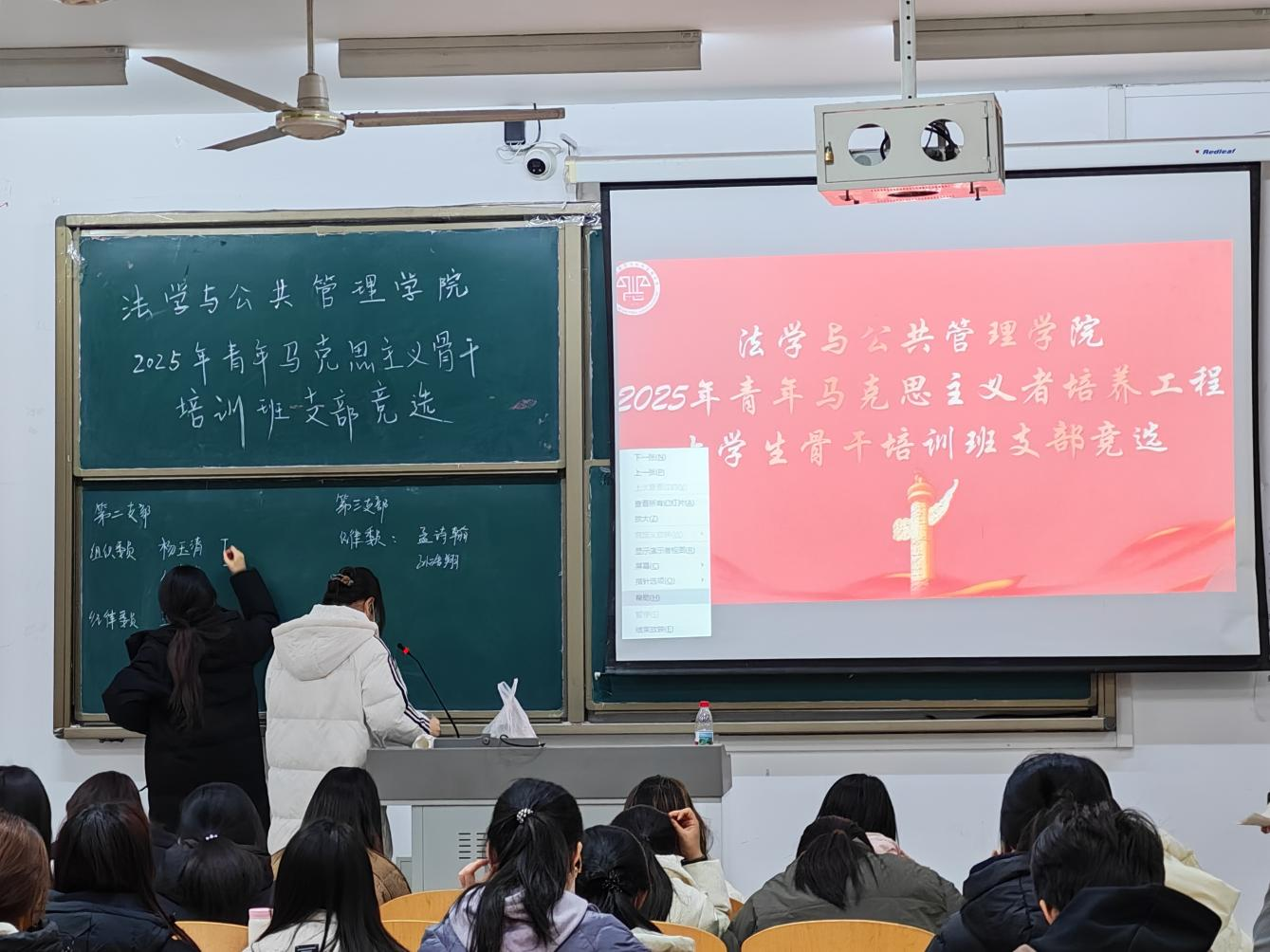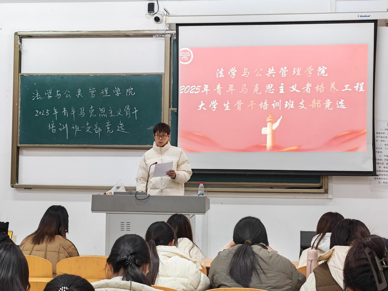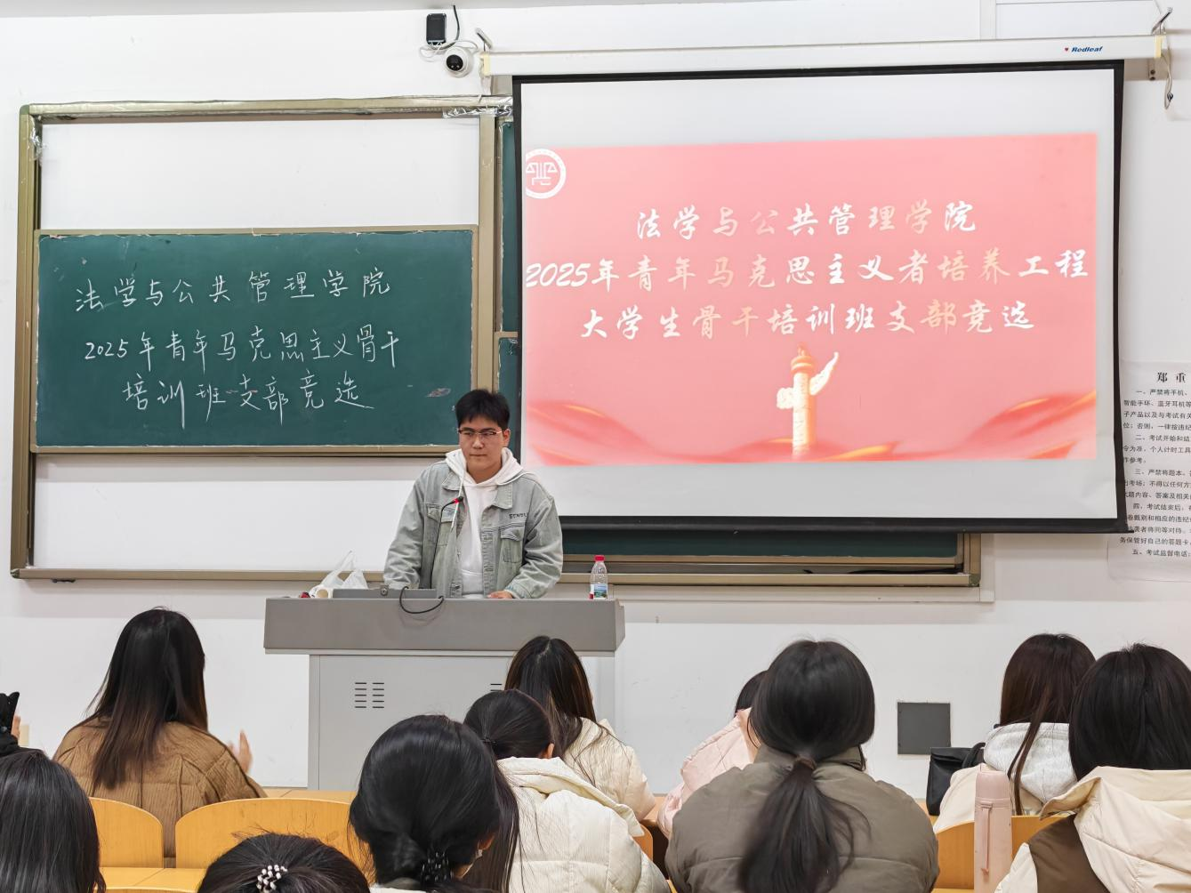 为扎实推进青年马克思主义者培养工程建设,凝聚青年骨干向心力,11月16日,法学与公共管理学院青年马克思主义者培养工程培训班支部竞选大会隆重召开。